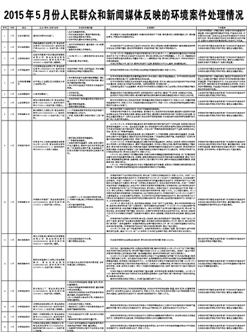 2015年5月份人民群众和新闻媒体反映的环境案件处理情况