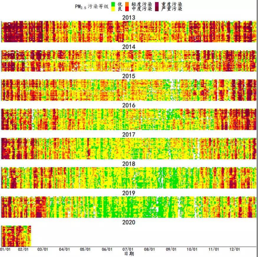 虽然过去一个月重污染天气频发,但2013年以来,京津冀及周边地区“2+26”城市PM2.5年均浓度逐年下降,北京市2019年PM2.5年均浓度达到42微克/立方米的历史低值。春夏季PM2.5优良天显著增加,朋友圈里晒蓝天越来越多;秋冬季重污染天明显减少,污染过程和以往相比持续时间变短、污染程度明显减轻,即使有“雾-霾”,也不像以前那么“厚重”了。
