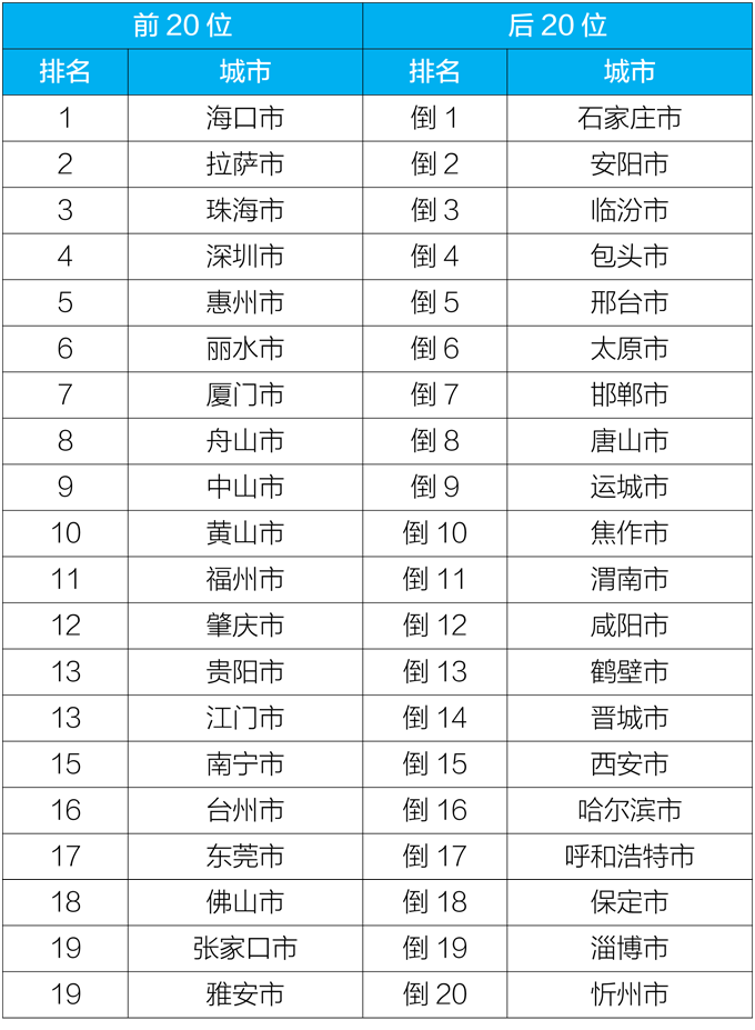 2020年5月168个重点城市环境空气排名前20位和后20位城市名单