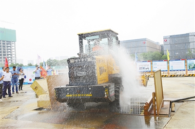 图为南京市建邺区国际医院项目施工现场,正在清洗一辆挖土车。 唐伟利摄