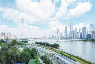 美丽的珠江与蓝天白云相映成辉。 钟奇振供图