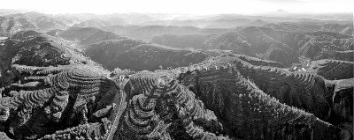 落差数百米的陡峭石崖上,层层叠叠的翠柏顺着黄河河道,一直绵延到天际。这是黄河中游晋陕大峡谷三北工程人工柏树林。历史上,晋陕大峡谷所在黄土高原残垣沟壑区水土严重流失面积超过80%,经过数十年坚持不懈地植树造林,如今这里已成生态旅游胜地。