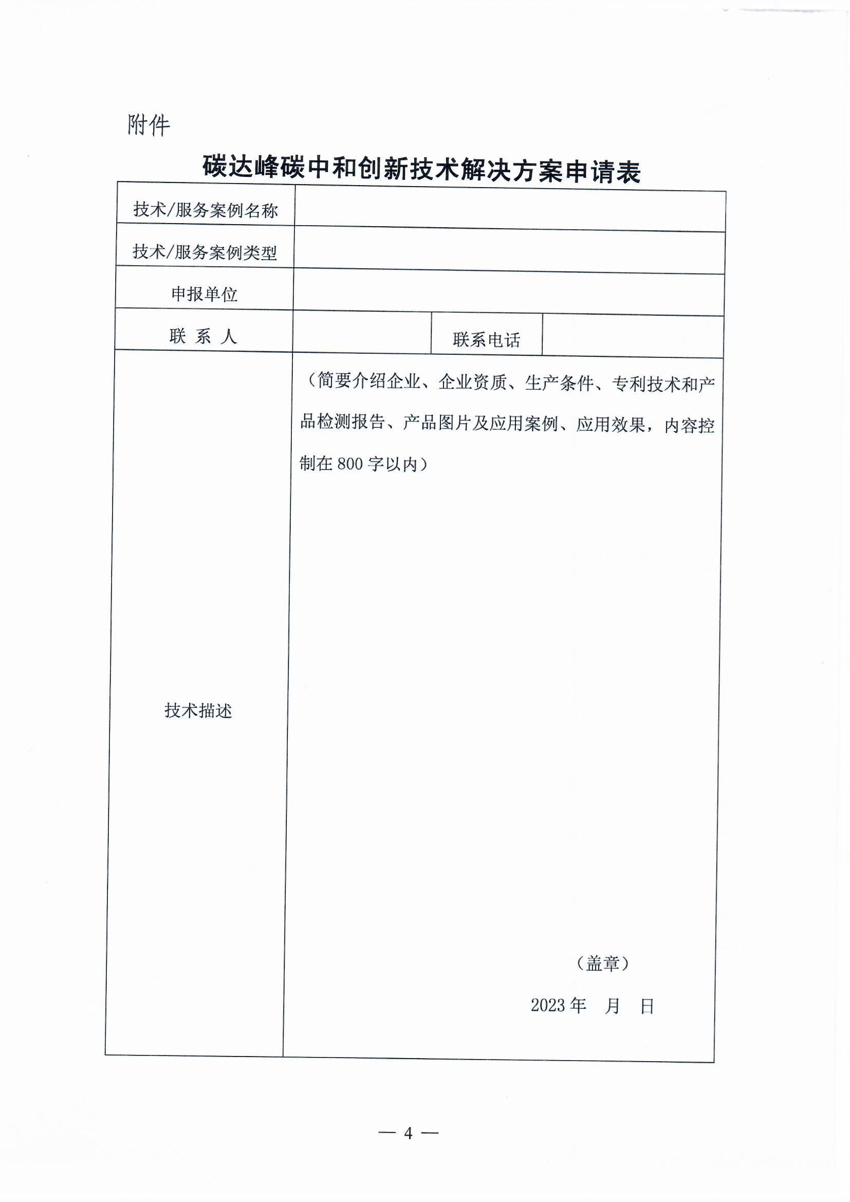碳达峰碳中和创新技术解决方案申请表