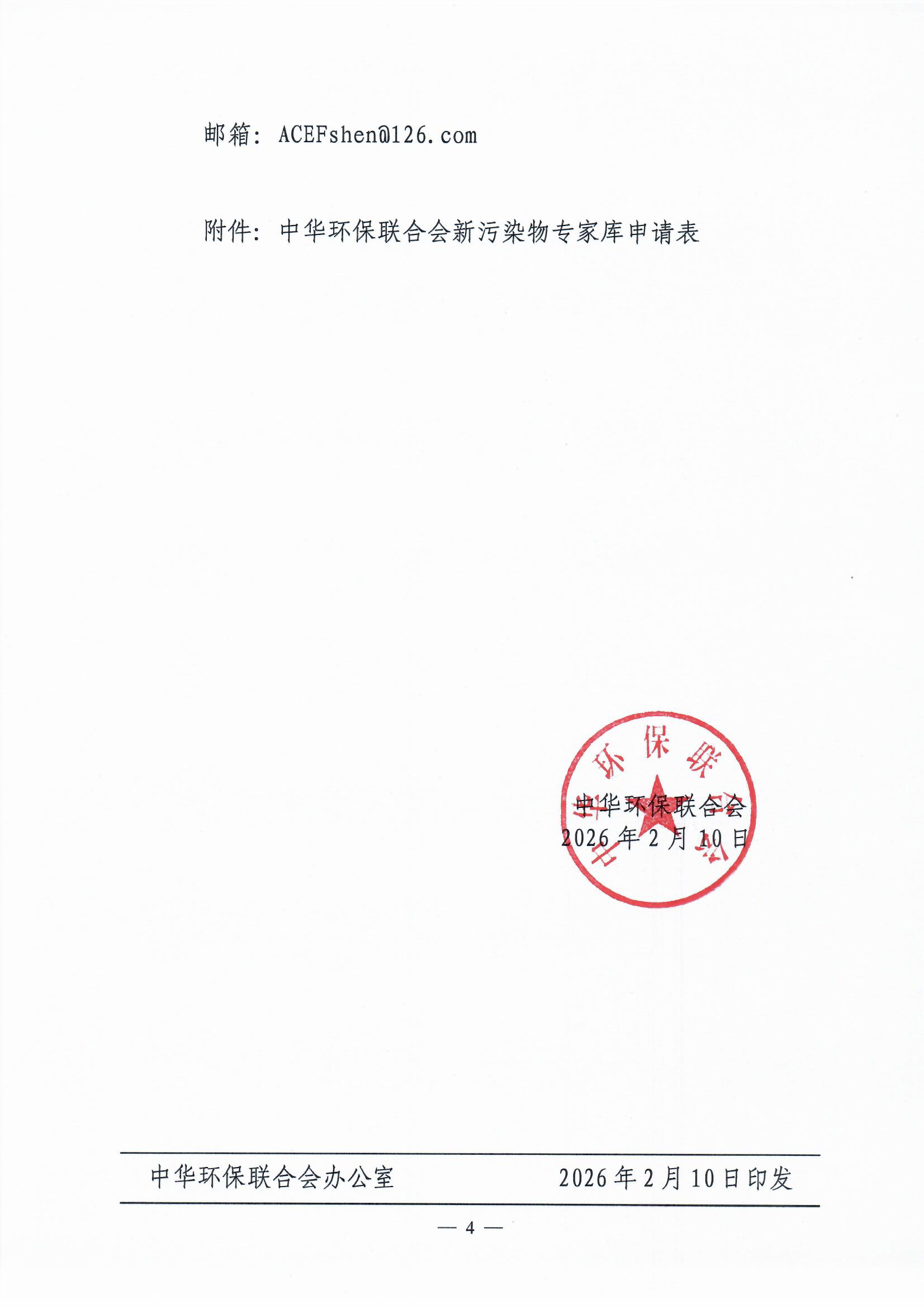 关于邀请加入中华环保联合会新污染物专家库的通知