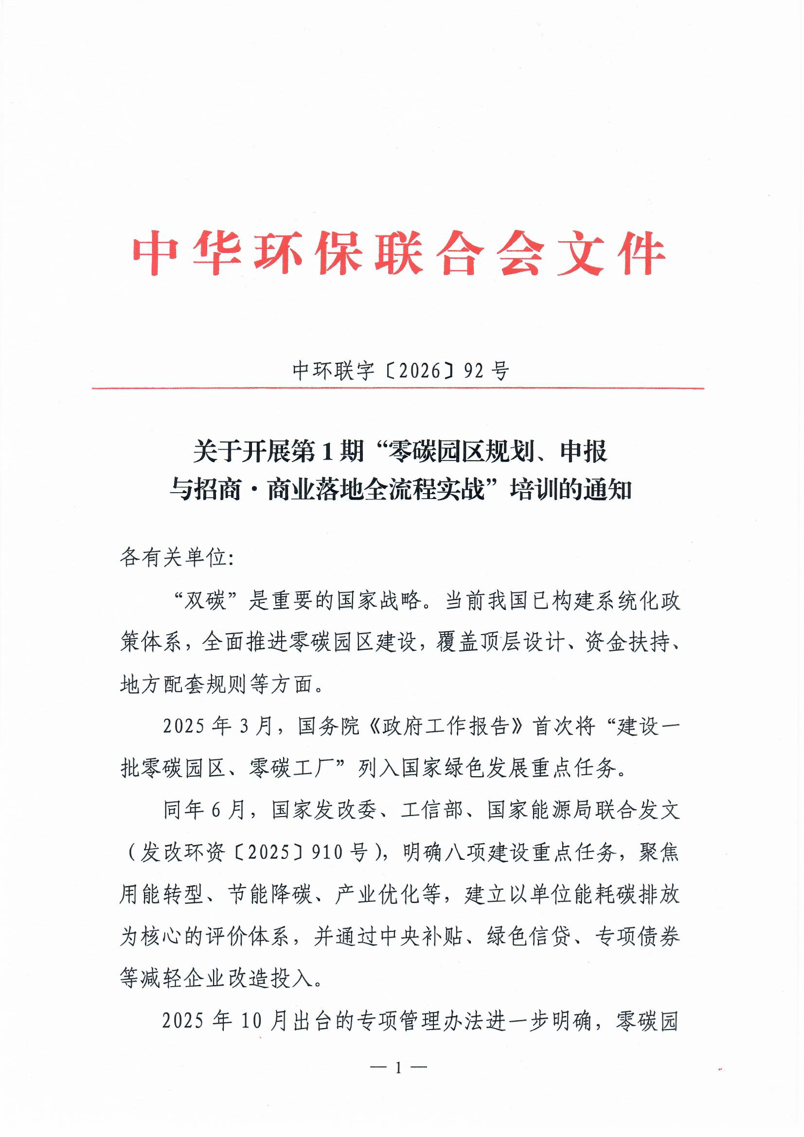 关于开展第1期“零碳园区规划、申报与招商.商业落地全流程实战”培训的通知