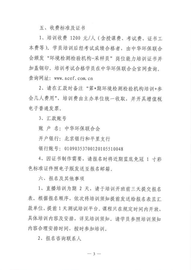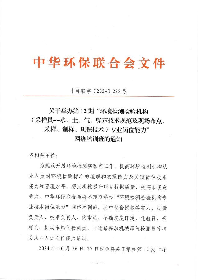 关于举办第12期“环境检测检验机构(采样员--水、土、气、噪声技术规范及现场布点、采样、制样、质保技术)专业岗位能力”网络培训班的通知