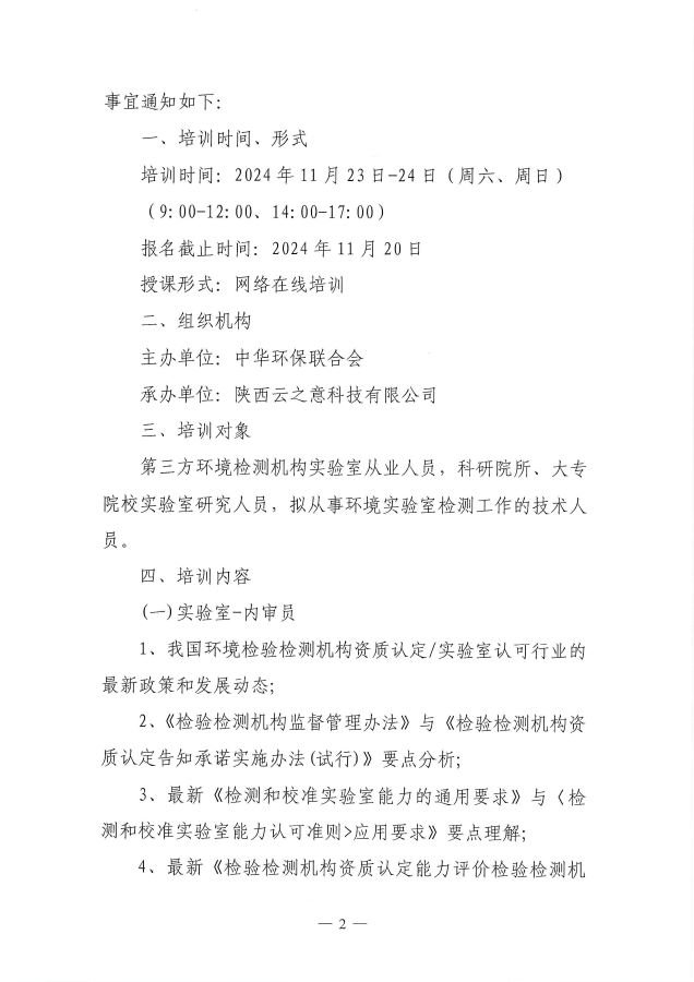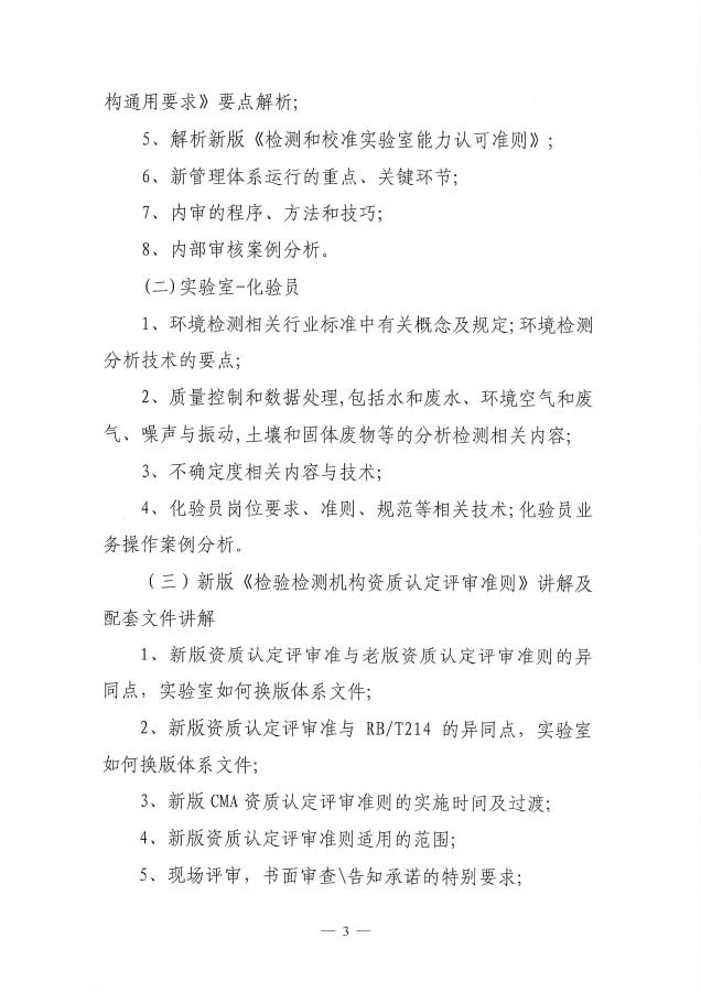 关于举办第13期“环境检测检验机构(内审员、化验员)专业岗位能力”网络培训班的通知