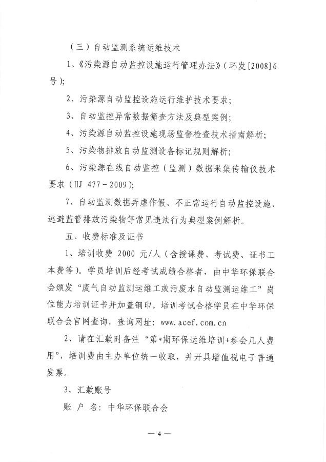 关于举办第24期“环保设施运营(废气自动监测运维工、污废水自动监测运维工)操作技术岗位能力”网络培训班的通知