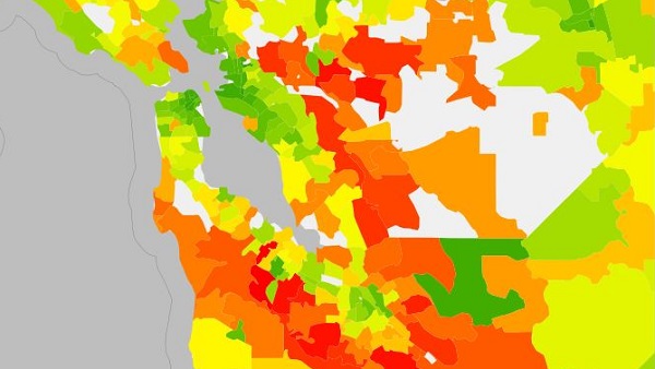 旧金山湾区郊区的碳排放速度在迅速增长。(自加州大学伯克利分校碳地图)