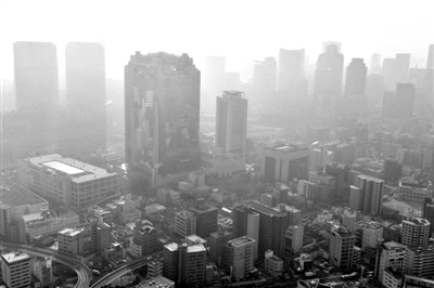 图为2月26日清晨的日本城市大阪。据日本媒体27日报道,日本首都东京空气中的PM2.5浓度当天上升,其中3个区的平均浓度值接近政府标准规定的“发布预警”等级的数值。日本富士电视台报道称,也许是由于受到PM2.5的影响,从远处看涉谷的一些高楼也变得若隐若现。