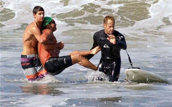 为救下男子,当地渔民剪断了鱼钩,一名冲浪者将男子拉上船,并在洛杉矶县救生员帮助下将其送上海岸,随后医生对男子展开救治。目前,尚不清楚伤者身份,只知道其是一名中年人。
