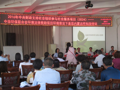 6月7日,中华环保联合会环境普法下基层活动在内蒙古呼和浩特市山水小区举行,这是我会环境法律救助项目之环境法律下基层西部宣讲的首站。中华环保联合会领导、内蒙古自治区环保厅宣传教育中心领导以及环境律师等出席活动,山水小区60多位居民参加。
